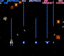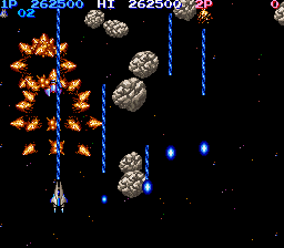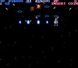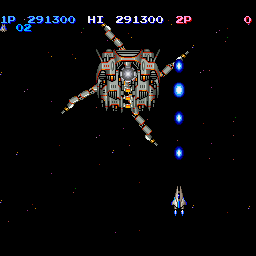 その後の雑魚の編隊も、オプションを右側に広げて処理します。